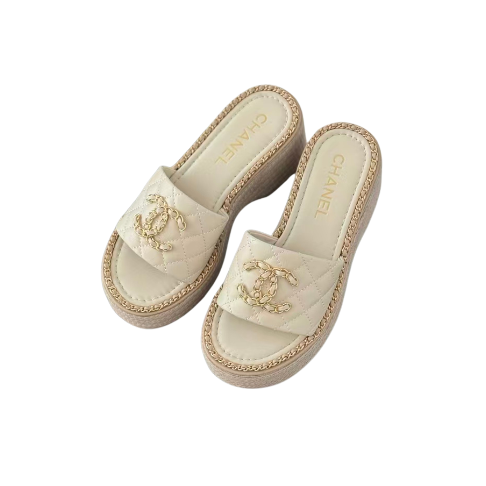 Chanel Women’s White Quilted Leather Slides Sandals - Brand New