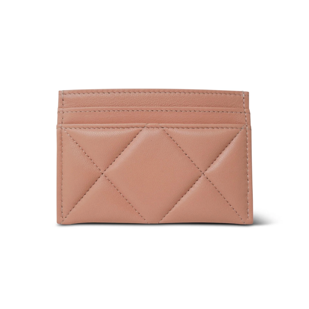 23P Beige Lambskin Quilted 19 Card Holder Aged Gold Hardware