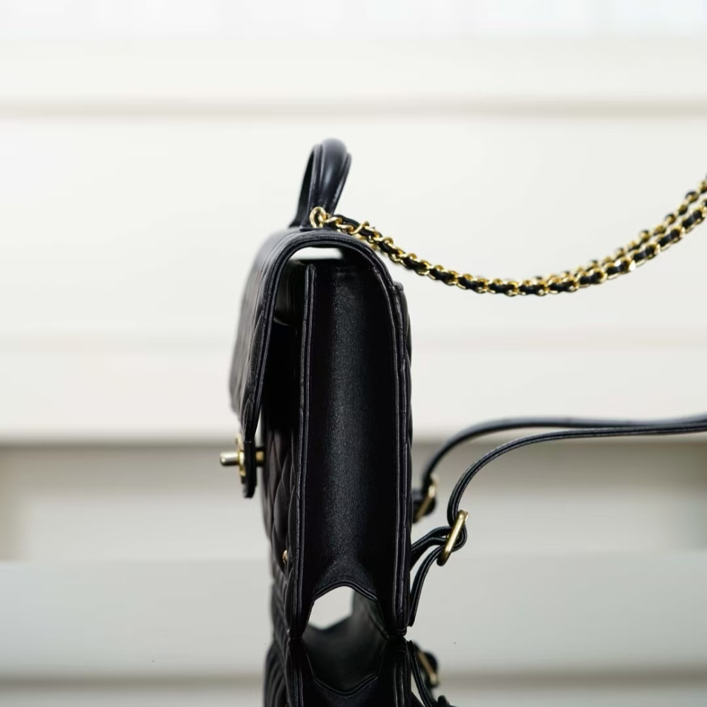 Chanel 25B Messenger/ Backpack in Lambskin with Gold-Tone Hardware (Black)
